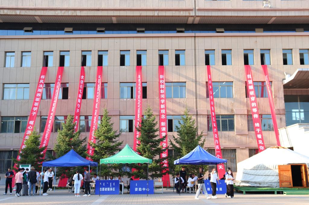 早上六時,我校迎新工作正式開始。學校出于疫情防控的需要,今年明確規定,外來車輛和學生家長一律禁止入內,根據學校“我為群眾辦實事”安排,出動十輛小型面包車,二十輛校園巡邏電動車,幫助同學們將行李由校門運至報到點,再由各學院志愿者定點引導同學完成報到事宜。學校出動愛心車接力,無縫銜接打通了民院報到最后一公里。新生報到采用“易班”線上掃碼的形式開展,同學們通過“易班”迎新系統完成個人信息完善、家庭經濟情況登記、軍訓服裝尺碼采集等手續,既大大地簡化了報到流程也實現“數字迎新”。迎新現場的LED電子大屏滾動播放學校宣傳片,實時更新報道人數,讓科技助力學生服務管理。除此之外,各二級學院結合專業特點,為2021級新生獻上了一場精彩紛呈的演出,詮釋著都林廣場最熱情的期待。由音樂學院馬頭琴專業學生演奏的馬頭琴曲合奏,婉轉悠揚;蒙古長調《團尾馬》,音域寬廣,高亢奔放;竹笛二重奏《揚鞭催馬運糧忙》,銀鈴悅耳,清涼遼遠;大學生藝術團表演的舞蹈《奔騰》和《吆呼爾》,舞姿優美,活力滿滿點燃了整個迎新現場。
