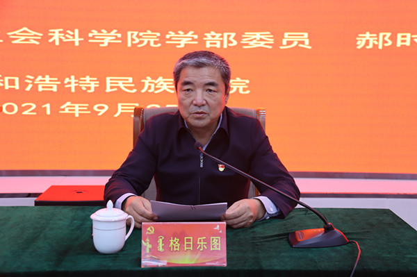 在全面開展黨史學習教育之際,為深入學習貫徹習近平總書記在中央民族工作會議上的重要講話精神,9月25日下午,我校以黨委理論中心組擴大學習形式舉辦黨史學習教育第七期讀書班,邀請我國著名的民族學家、中國社會科學院學部委員、中國人類學學會會長郝時遠教授作了《遵循主線 綱舉目張--學習中央民族工作會議精神》為題的專題輔導報告。全體校領導、黨委理論學習中心組成員、全體副處以上干部聆聽報告。學校黨委副書記、校長格日樂圖主持會議。