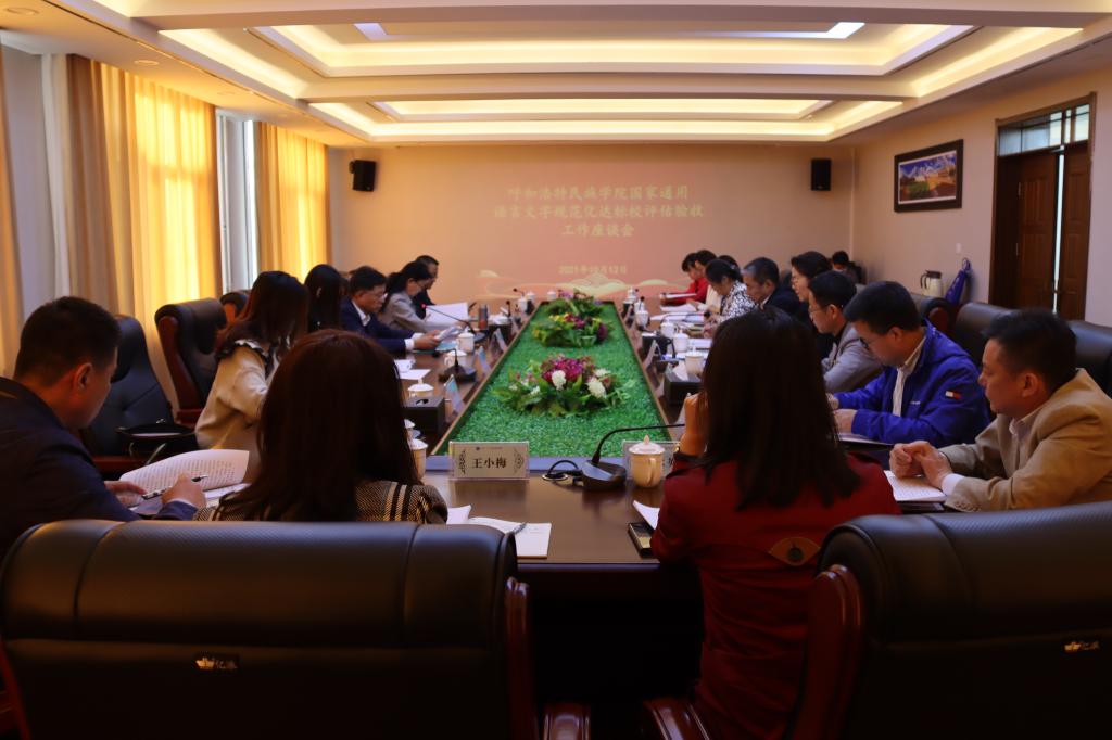 12日上午舉行了匯報會,我校黨委副書記、校長格日樂圖主持會議。會上,任軍組長介紹了評估組成員并就此次評估的工作任務(wù)、目標(biāo)要求作了強(qiáng)調(diào)。格日樂圖校長匯報了我校國家通用語言文字規(guī)范化達(dá)標(biāo)校建設(shè)開展工作情況。