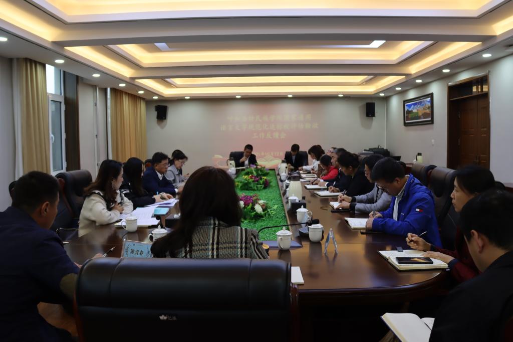 會后,評估組通過與師生代表座談、隨機(jī)聽課、查閱語言文字工作檔案資料;參觀調(diào)研我校民族團(tuán)結(jié)進(jìn)步文化長廊、鑄牢中華民族共同體意識研究基地、華為云學(xué)院鯤鵬中心,查看校園標(biāo)識用語用字情況等環(huán)節(jié),全面考察了學(xué)校國家通用語言文字規(guī)范化達(dá)標(biāo)建設(shè)情況。