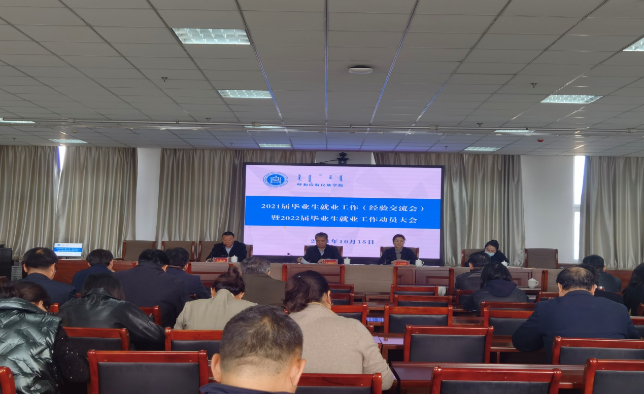 10月15日上午,我校2021屆畢業生就業工作總結會暨2022屆畢業生就業工作動員會在綜合樓12樓會議室召開。校黨委副書記、校長格日樂圖,副校長納麗娜出席會議。各學院黨總支書記、院長,各部門負責人,就業指導處全體人員,校專職輔導員,2022屆畢業班班主任參會。會議由副校長納麗娜主持。