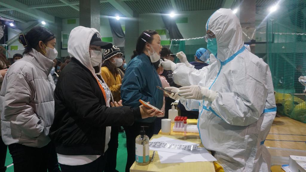 體育館內,“石榴籽”志愿者們全程開展秩序引導和服務保障工作,受到了醫護人員和廣大師生的好評。