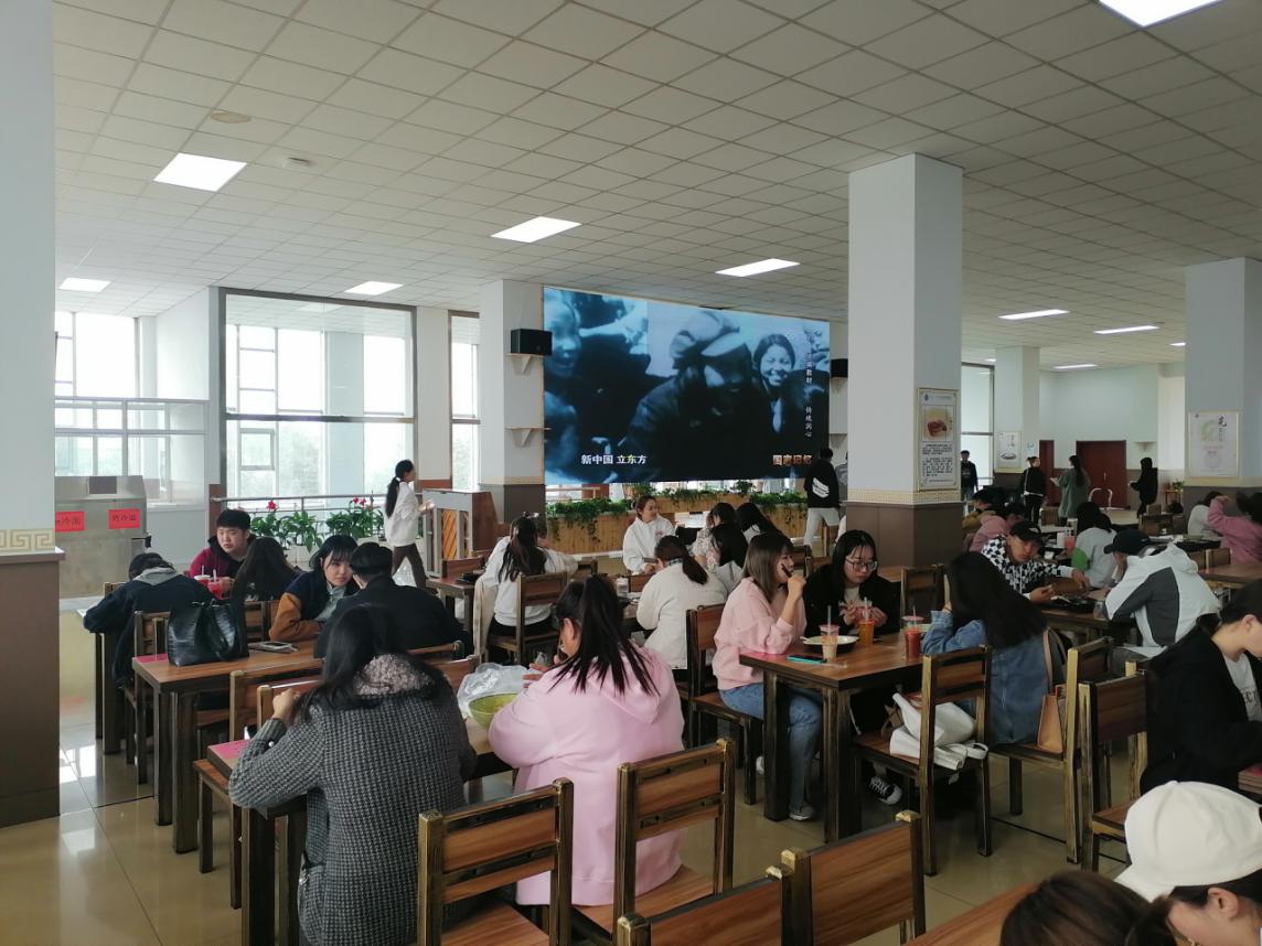 為充分發(fā)揮食堂環(huán)境育人作用和服務(wù)功能,后勤管理處黨支部積極改造學(xué)校南區(qū)食堂三樓餐廳,通過增設(shè)書架花架,更換餐桌餐椅、修復(fù)粉刷墻面、安裝電子屏幕,打造環(huán)境優(yōu)美、溫馨舒適的就餐、學(xué)習(xí)和交流活動區(qū)域。其中,通過三樓電子屏幕,結(jié)合開展黨史學(xué)習(xí)教育,滾動播放紅色電影以及《同心共筑中國夢》等專題紀(jì)錄片,充分發(fā)揮環(huán)境育人作用。