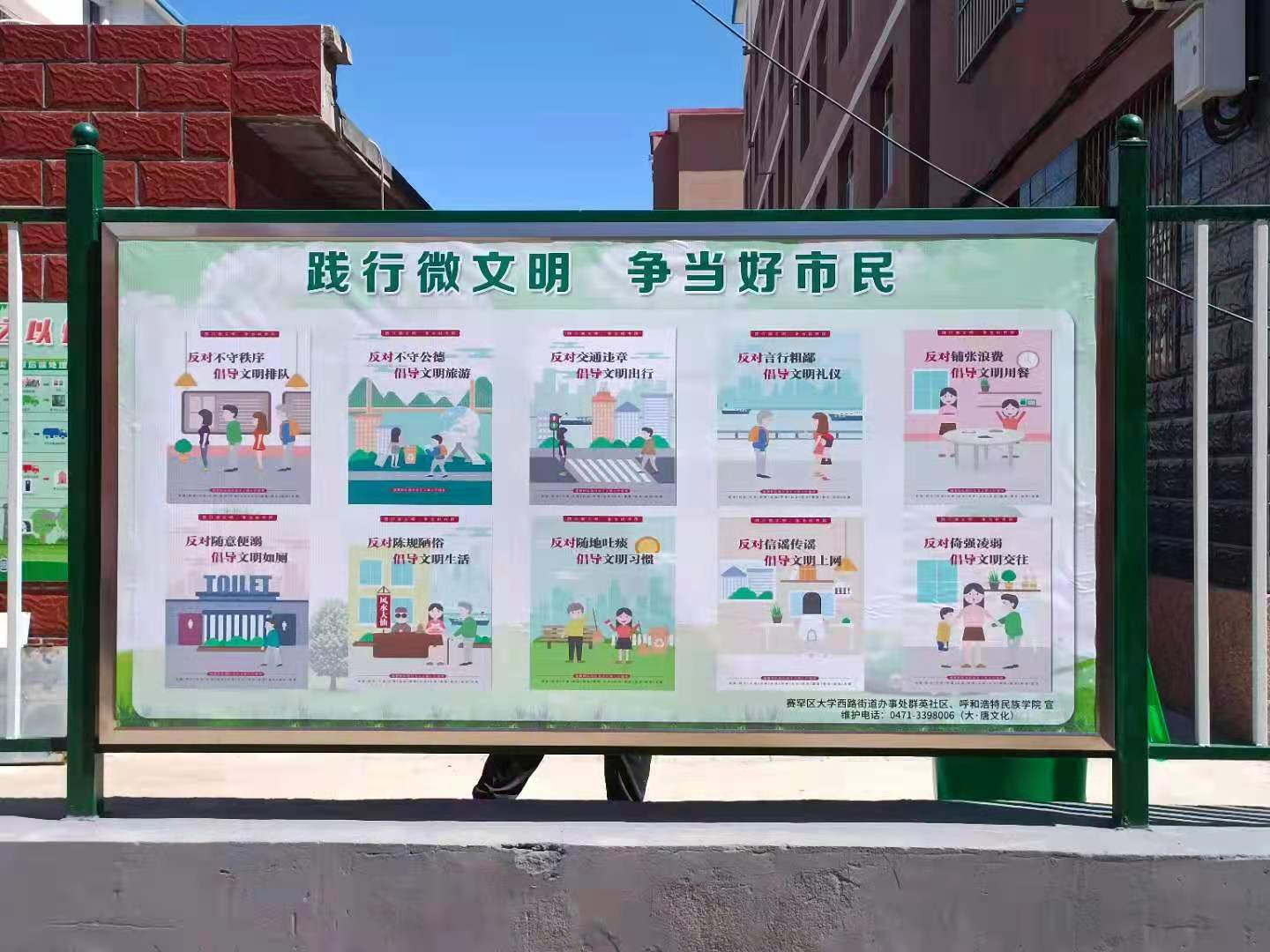 開展聯(lián)創(chuàng)共建活動。為助力首府創(chuàng)建全國文明城市,校黨委宣傳部黨員干部赴大學(xué)西路金屬公司小區(qū)實地考察對接結(jié)對幫扶、聯(lián)創(chuàng)共建工作。校黨委宣傳部以“創(chuàng)建文明城市 爭做文明市民 ”為主題精心制作了宣傳展板,懸掛在小區(qū)醒目位置。此舉加強了首府文明城市創(chuàng)建工作的宣傳輿論力度,時刻提醒著社區(qū)居民要注重文明禮儀行為,文明就在你我身邊。