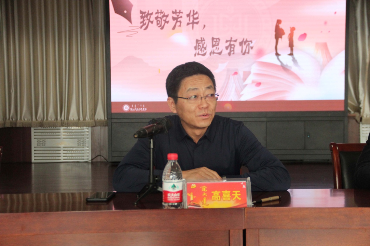 格日樂圖校長代表學校黨委向榮休教職工表示感謝,感謝他們把最美好的時光奉獻了民院,將青春和智慧留在了校園,把立德樹人、鑄魂育人的使命擔當寫在了民院68年的發展史上。