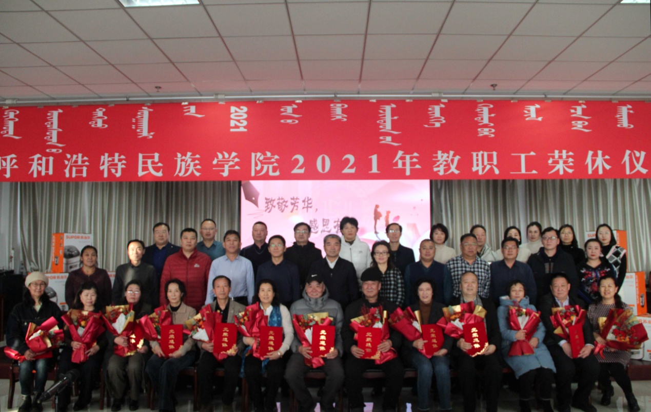 12月10日下午,學校2021年教職工榮休儀式在綜合樓12樓會議室舉行。校黨委副書記、校長格日樂圖,黨委副書記胡春梅,黨委委員、副校長高喜天出席榮休儀式。黨政辦公室、工會、離退休人員工作處等相關部門負責人,榮休教職工所在單位負責人、分工會主席、榮休教職工等50余人參加榮休儀式。榮休儀式由黨委委員、副校長高喜天主持。