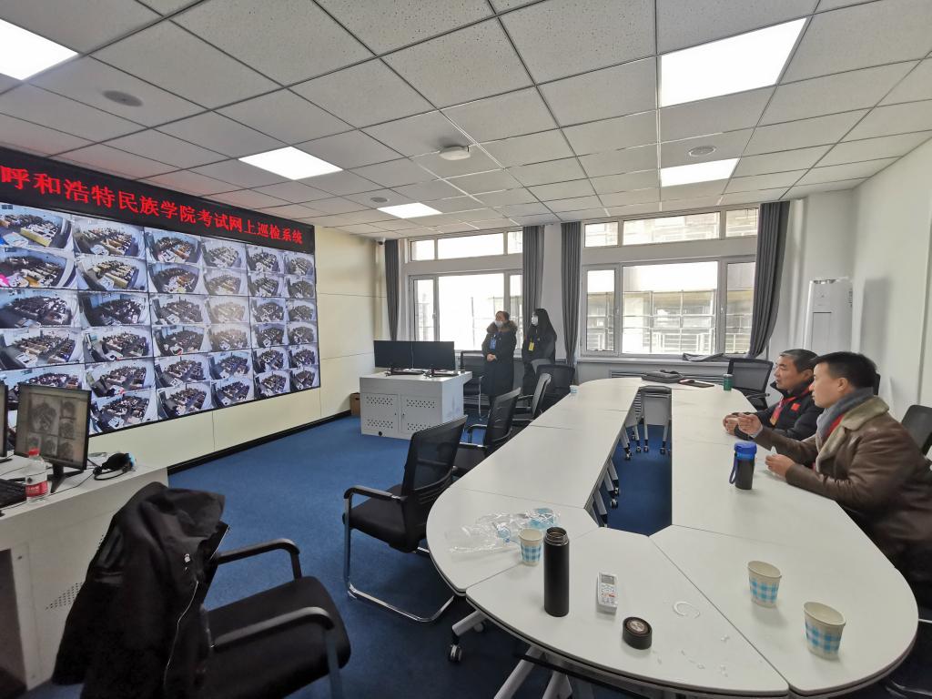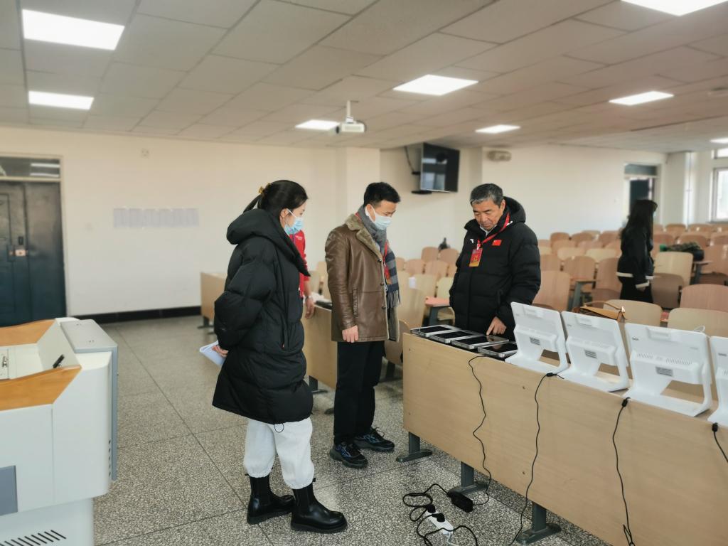 學校黨委高度重視全國大學英語四六級考試,校黨委副書記、校長格日樂圖深入考試一線,視察考場人臉識別驗證系統運行情況及考場秩序、教師監考、考生應考、流動監考、視頻監控、疫情防控等情況,詢問了解相關事宜,肯定了教務處前期準備工作,并作了全面現場指導。
