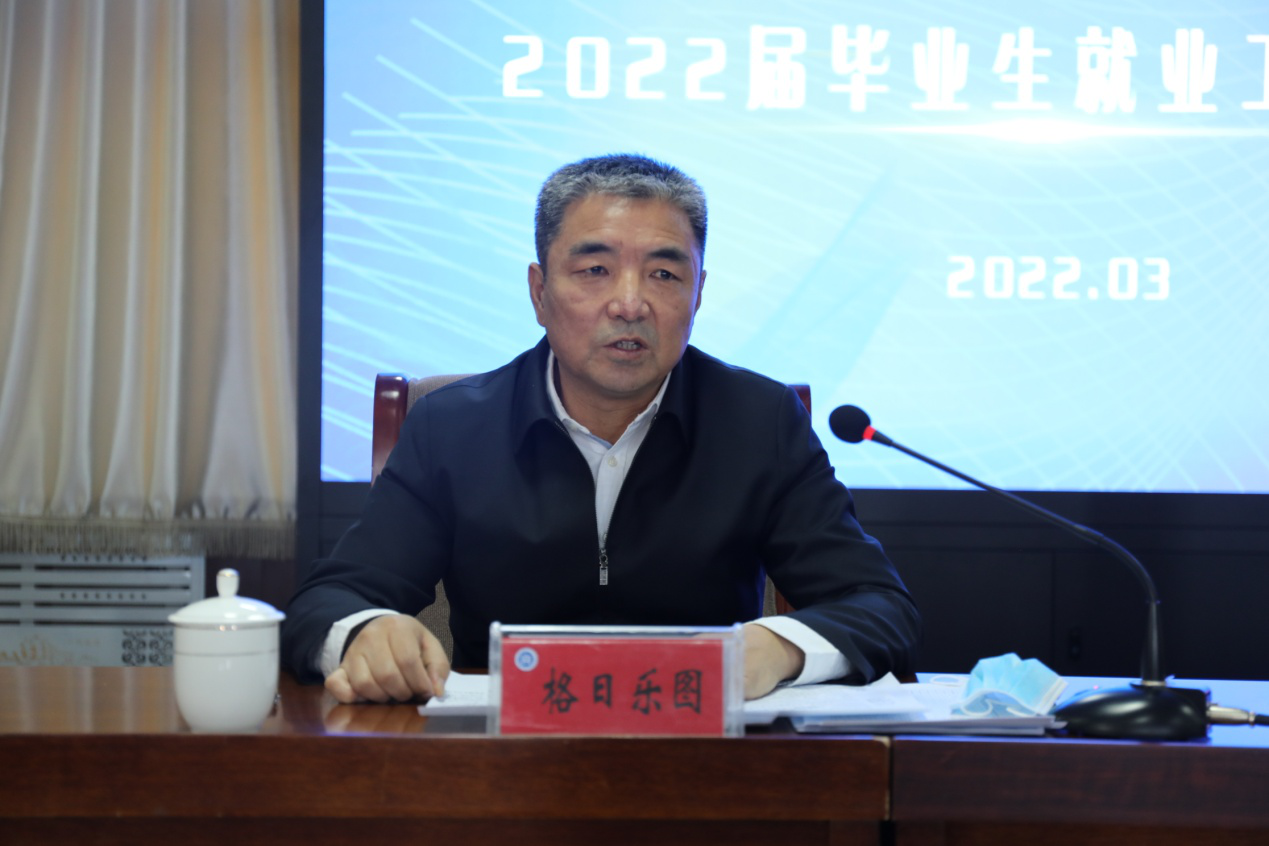 會上,校黨委書記格日樂圖就做好2022年畢業生就業工作提出了三點意見。他強調,一是提高政治站位,認清形勢變化,切實增強做好今年畢業生就業工作的責任感和使命感。二是形成“全員參與、全程服務”的就業工作大格局,做到統一思想、廣泛動員。三是壓實責任,明確職責,建立責任臺賬,做實做細各環節工作。