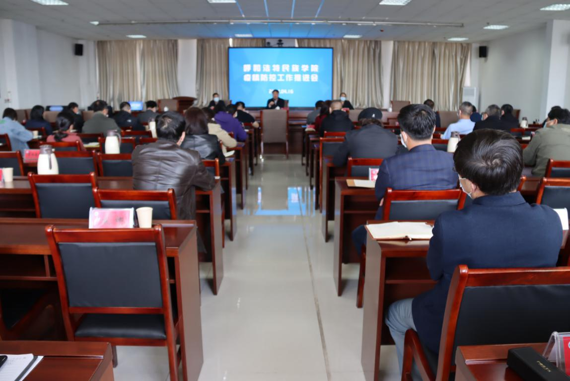 我校于4月16日在綜合樓12樓會議室召開疫情防控工作推進(jìn)會。會議由喬彪校長主持。黨委委員、紀(jì)委書記、監(jiān)察專員王冬梅,黨委委員、副校長高喜天出席會議,各部門負(fù)責(zé)人,各二級學(xué)院黨總支書記、院長,疫情防控工作領(lǐng)導(dǎo)小組全體成員參加會議。