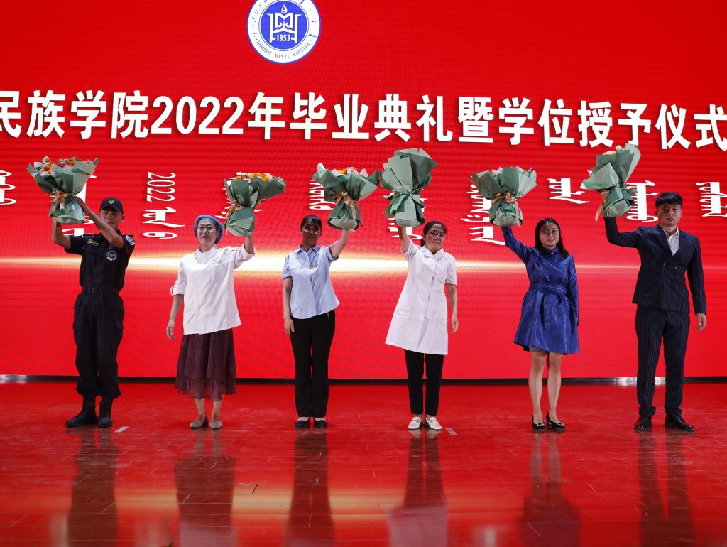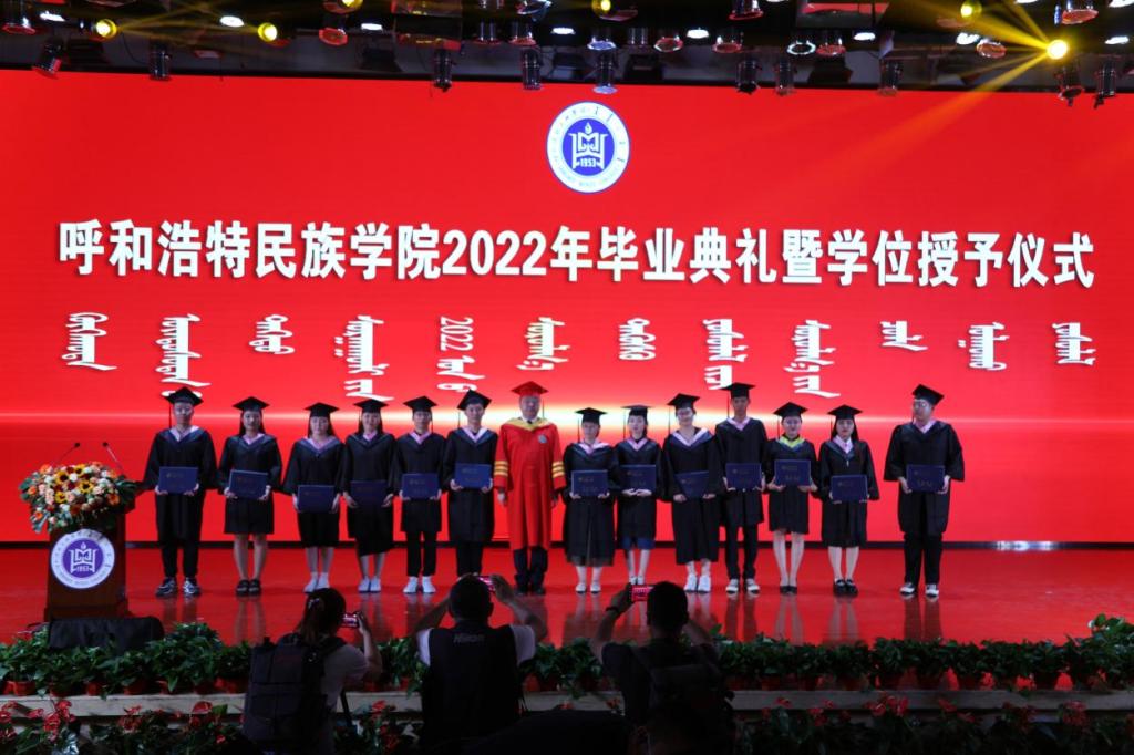 典禮上,格日樂(lè)圖書(shū)記為優(yōu)秀畢業(yè)生代表及獲得優(yōu)秀論文(設(shè)計(jì))的畢業(yè)生代表頒發(fā)榮譽(yù)證書(shū);喬彪校長(zhǎng)為畢業(yè)生代表頒發(fā)畢業(yè)證書(shū);黨委副書(shū)記胡春梅宣讀了《關(guān)于表彰2022年優(yōu)秀畢業(yè)生的決定》;紀(jì)委書(shū)記王冬梅宣讀了《關(guān)于呼和浩特民族學(xué)院2022屆校級(jí)優(yōu)秀畢業(yè)論文(設(shè)計(jì))的表彰決定》;高喜天副校長(zhǎng)宣讀了《本專(zhuān)科生畢業(yè)決定及授予學(xué)士學(xué)位的決定》。