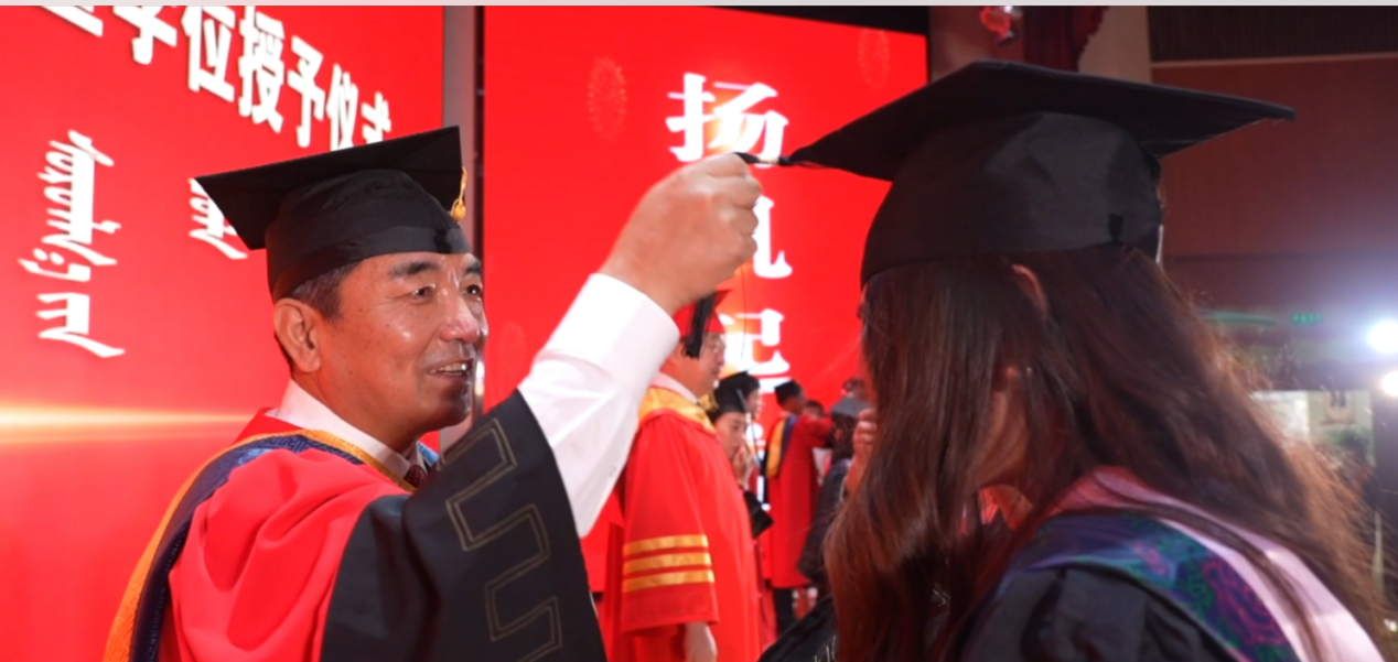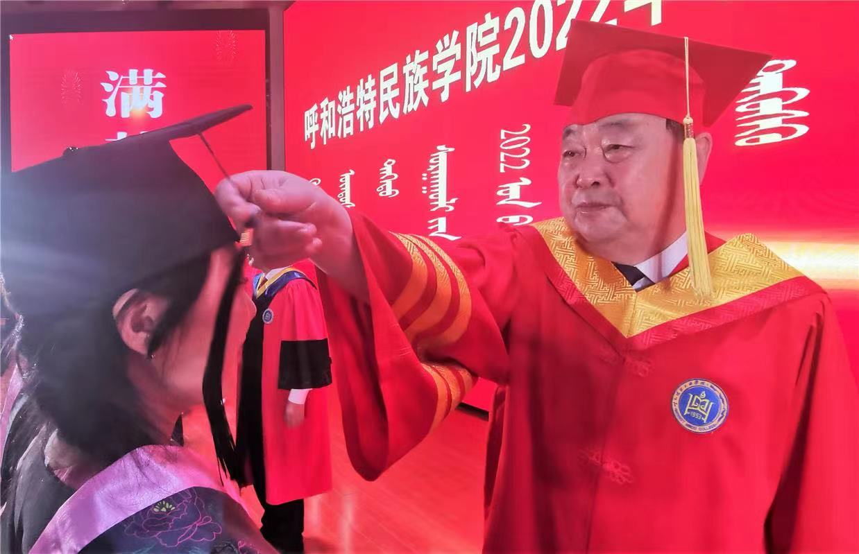 蔭蔭夏日,依依惜別。7月6日上午,我校首次以線上線下相結(jié)合的方式舉行2022年畢業(yè)典禮暨學(xué)位授予儀式。校黨委書(shū)記格日樂(lè)圖,校黨委副書(shū)記、校長(zhǎng)喬彪,校黨委副書(shū)記胡春梅,副校長(zhǎng)納麗娜,黨委委員、紀(jì)委書(shū)記、監(jiān)察專(zhuān)員王冬梅,黨委委員、副校長(zhǎng)高喜天,校學(xué)位評(píng)定委員會(huì)全體委員,畢業(yè)生工作領(lǐng)導(dǎo)小組全體成員、班主任、輔導(dǎo)員代表及2022屆畢業(yè)生代表參加了典禮。典禮由校學(xué)位評(píng)定委員會(huì)副主任、副校長(zhǎng)納麗娜主持。