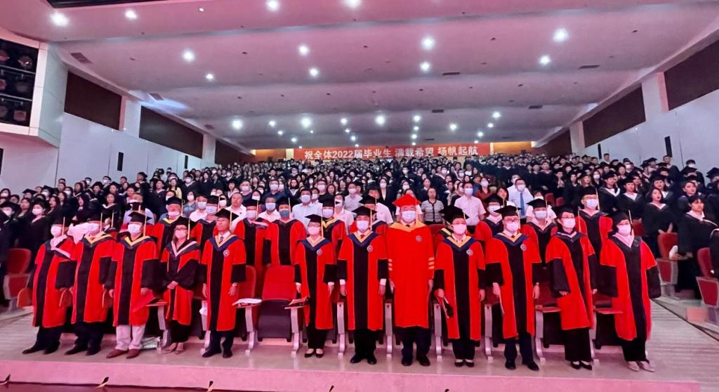 典禮上,全體校領(lǐng)導(dǎo)共同為到場(chǎng)的1230名畢業(yè)生頒發(fā)證書(shū)、撥正流蘇。