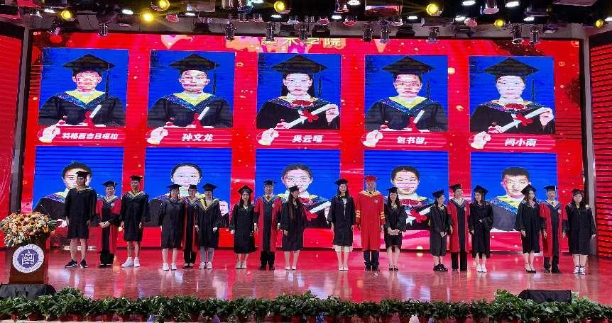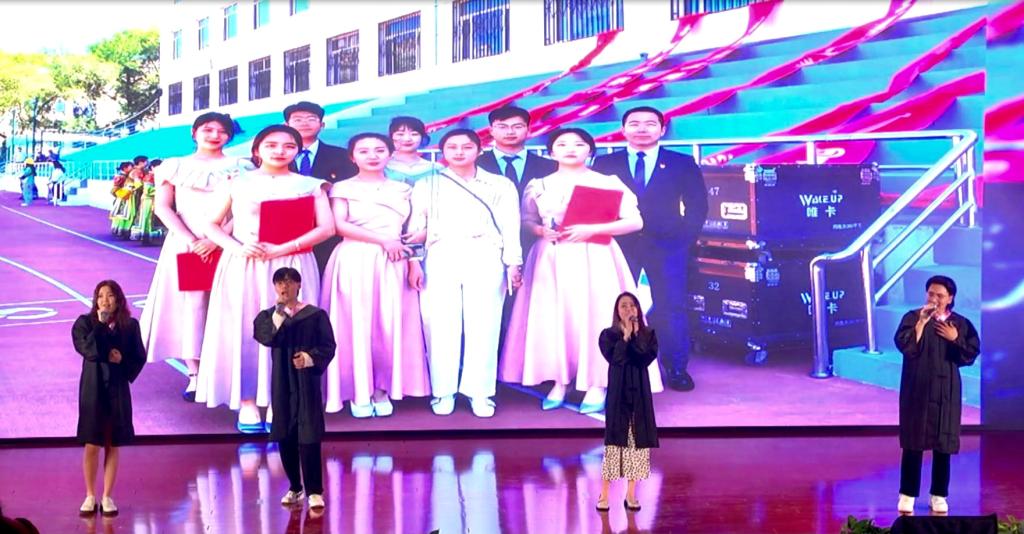 典禮開(kāi)始前,各二級(jí)學(xué)院畢業(yè)生代表在會(huì)場(chǎng)進(jìn)行了青春歌曲大聯(lián)唱。典禮現(xiàn)場(chǎng)播放了由學(xué)生工作部制作的畢業(yè)紀(jì)念短片《飛得更高》。