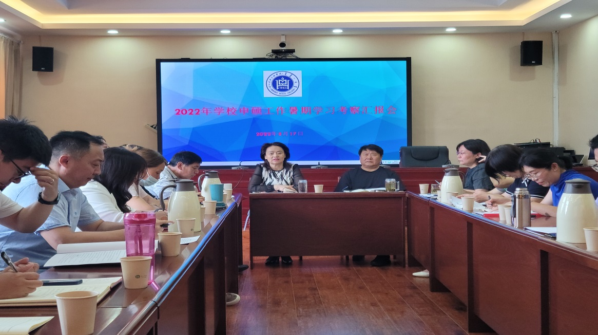 8月17日上午,2022年學校申碩工作暑期學習考察匯報會在辦公樓四樓會議室召開。學校黨委副書記、學校申碩工作領導小組常務副組長胡春梅出席會議并講話。4個申碩工作暑期學習考察組成員、學校申碩工作材料組成員及發展規劃與學科建設處全體成員參會。會議由發展規劃與學科建設處處長、學校申碩工作領導小組辦公室主任包賽吉拉夫主持。