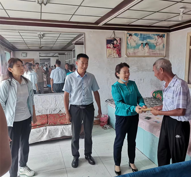 隨后,胡春梅一行深入嘎查實地走訪嘎查老黨員及困難群眾,詳細詢問他們的身體狀況、生活情況和家庭情況,并送上慰問金,表示今后將切實加大幫扶力度,一如既往地支持嘎查發展。