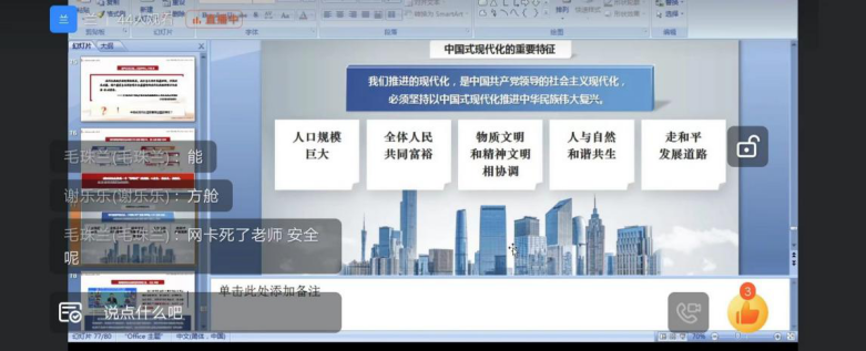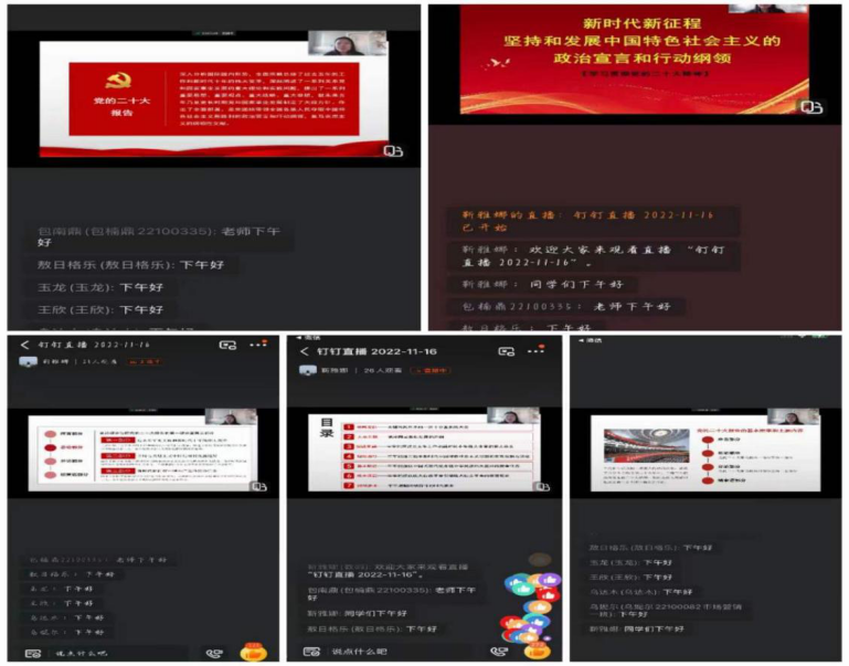 為進一步深入學習宣傳貫徹落實黨的二十大精神,馬克思主義學院組織全體思政課教師參加中宣部、教育部舉辦的全國高校思政課骨干教師研修班——二十大精神解讀、自治區教育廳組織的專家導學黨的二十大精神系列培訓班、東北師范大學馬克思主義學部舉辦的研究闡釋黨的二十大精神學術研討會暨集體備課會等活動,并于11月10-11月18日期間以專題形式開展宣講二十大精神的活動,取得良好成效。此次宣講活動以線上形式進行,覆蓋近4000余名學生,通過老師們的課堂專題宣講,幫助學生深刻理解黨的二十大召開的重大意義和二十大精神的核心要義,對于將黨的二十大精神全面有機融入學生實際生活起到了極大的促進作用,并有力推動習近平新時代中國特色社會主義思想和黨的二十大精神進教材、進課堂、進頭腦。