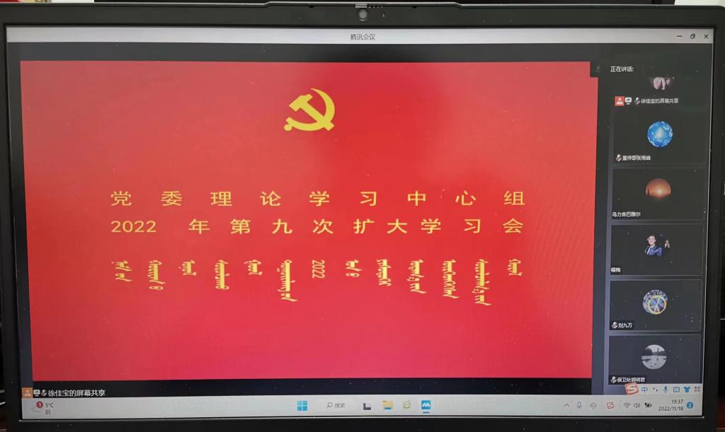11月18日晚,校黨委理論學習中心組(擴大)舉行2022年第9次集體學習會,集中學習黨的二十大精神。劉九萬主持會議。全體中心組成員、副處級以上干部、思政課教師參加集體學習會。會議以騰訊會議形式線上開展。