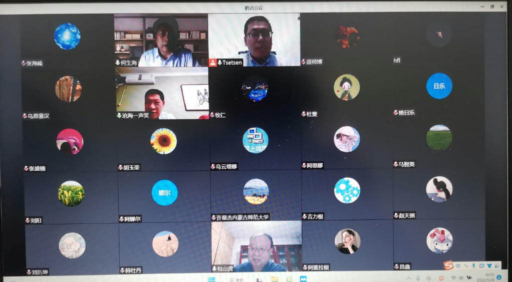校領導劉九萬在線出席學術講座,與何生海教授進行親切交流,希望兩校今后在鑄牢中華民族共同體意識研究和基地建設方面進一步加強交流與合作,共同發展。鑄牢中華民族共同體意識研究基地副主任、民族學學院副院長青斯琴主持講座。鑄牢中華民族共同體意識研究基地全體成員、各項目負責人、民族學學院全體教師以及區內相關高校、科研單位專家學者共80余人聆聽講座。