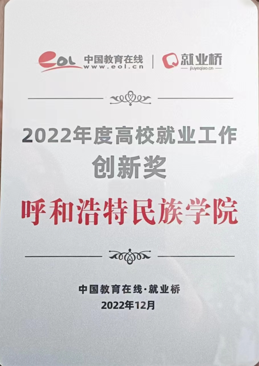 中國教育在線舉辦2022年度“新時代院校畢業生高質量就業工作總結大會”,總結2022年就業工作,并對耕耘就業工作、積極響應“就業優先戰略”,不斷突破創新的模范工作單位進行表彰,我校榮獲中國教育在線·就業橋“2022年度高校就業工作創新獎”。