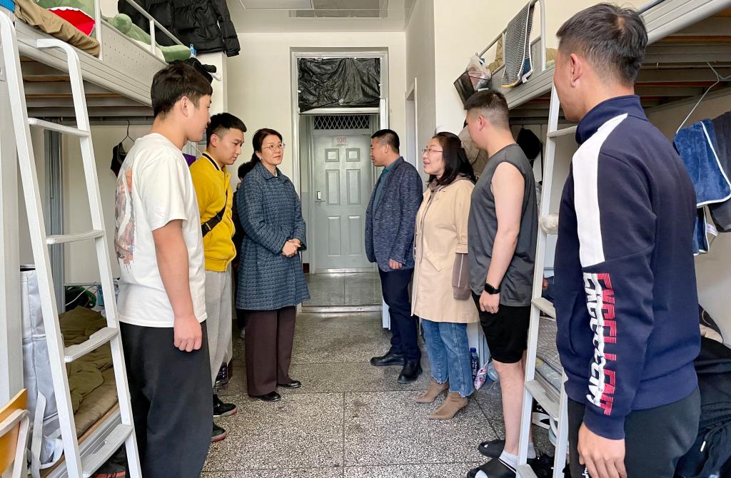 為進(jìn)一步做好對(duì)學(xué)生的教育、管理與服務(wù),排查學(xué)生宿舍安全隱患,了解學(xué)生的生活狀態(tài),4月26日下午,納麗娜副校長(zhǎng)及學(xué)生工作部相關(guān)人員開展了檢查走訪學(xué)生公寓活動(dòng)。