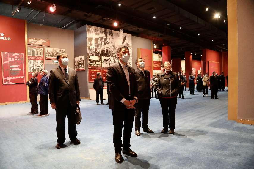 參觀開始前,全體觀展人員步入宣誓大廳,重溫入黨誓詞。大家面向鮮紅的中國共產(chǎn)黨黨旗,鄭重舉起右拳宣誓,用錚錚誓言宣示堅定決心,莊嚴(yán)的宣誓聲響徹大廳。