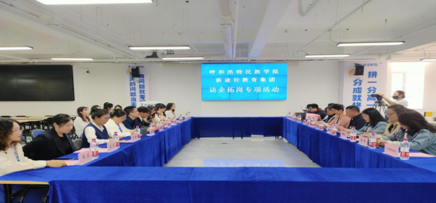 為全面落實好學習貫徹習近平新時代中國特色社會主義思想主題教育各項任務和教育部“訪企拓崗”專項行動工作部署要求,深入開展學生就業工作和人才培養工作領域的調查研究,5月9日上午,副校長納麗娜帶隊赴內蒙古新途徑教育科技有限公司開展訪企拓崗促就業專項調研并舉行座談交流。