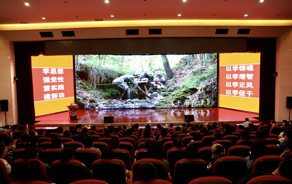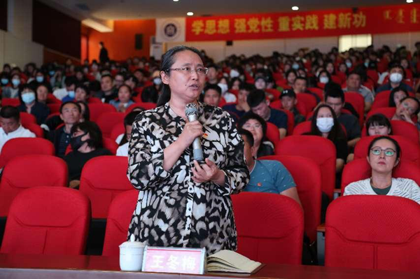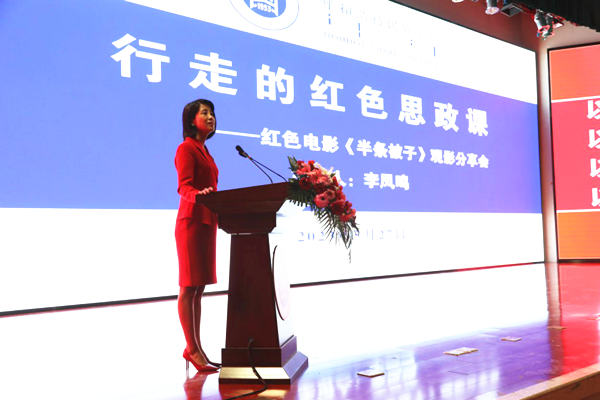 為進一步深入推動學習貫徹習近平新時代中國特色社會主義思想主題教育走深走實,創新學習形式,增強學習效果,強化入腦入心,5月27日下午,我校在舊圖書館二樓報告廳舉辦了“行走的紅色思政課”活動,集中觀看了紅色電影《半條被子》,并邀請電影《半條被子》主演李鳳鳴講授別樣的一堂紅色思政課。黨委委員、紀委書記、監察專員王冬梅,黨委委員、副校長高喜天出席活動,全校處級干部以及師生代表700余人參加活動。