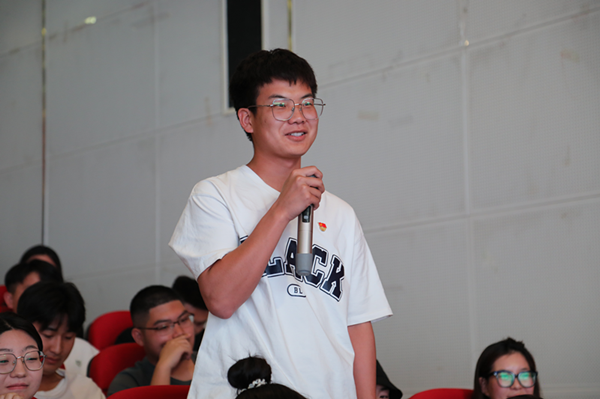 觀影結束后,李鳳鳴通過講述電影故事原型以及影片創作歷程,分享了對紅軍長征精神的更加深入理解,并與師生作了互動交流。