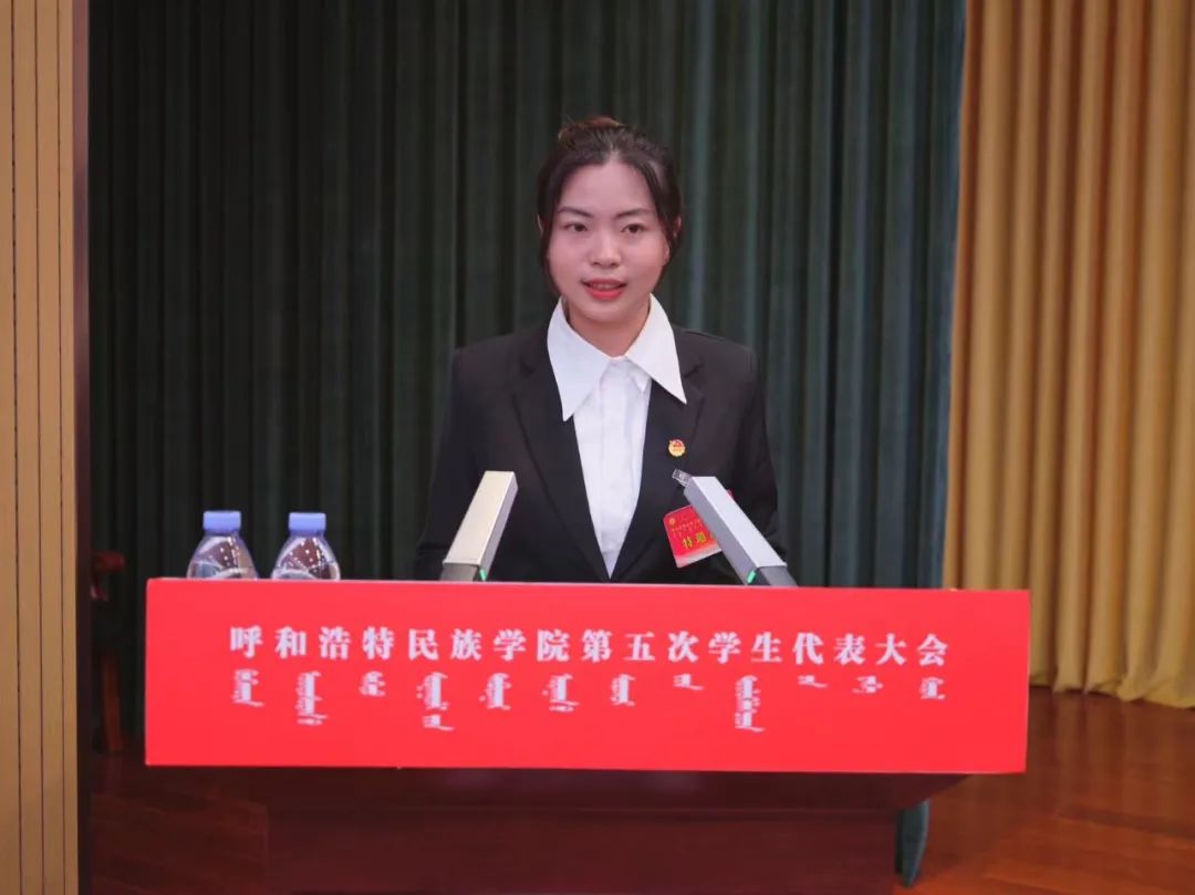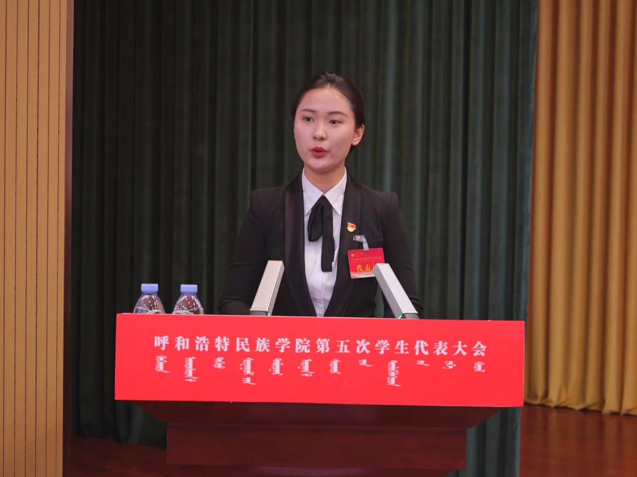 隨后,與會(huì)領(lǐng)導(dǎo)向?qū)W生代表贈(zèng)書;會(huì)議聽取了蔣昊言同學(xué)所作的《踔厲奮發(fā),勇毅前行,為全面建設(shè)現(xiàn)代化強(qiáng)國(guó),實(shí)現(xiàn)中華民族偉大復(fù)興,貢獻(xiàn)民院學(xué)子的青春力量》的工作報(bào)告。報(bào)告總結(jié)了第四次學(xué)生代表大會(huì)以來學(xué)生組織的工作與所獲成果,對(duì)學(xué)生組織的工作目標(biāo)和任務(wù)做出了規(guī)劃,并號(hào)召同學(xué)們要順應(yīng)時(shí)代潮流,準(zhǔn)確識(shí)變、科學(xué)應(yīng)變、主動(dòng)求變,立足國(guó)家和社會(huì)需要,不斷推進(jìn)改革創(chuàng)新,勇敢肩負(fù)起新時(shí)代強(qiáng)國(guó)榮校的歷史使命,彰顯新時(shí)代呼民院青年的擔(dān)當(dāng)作為,為學(xué)校高質(zhì)量發(fā)展、全方位建設(shè)“模范自治區(qū)”貢獻(xiàn)呼民院學(xué)子的青春力量!