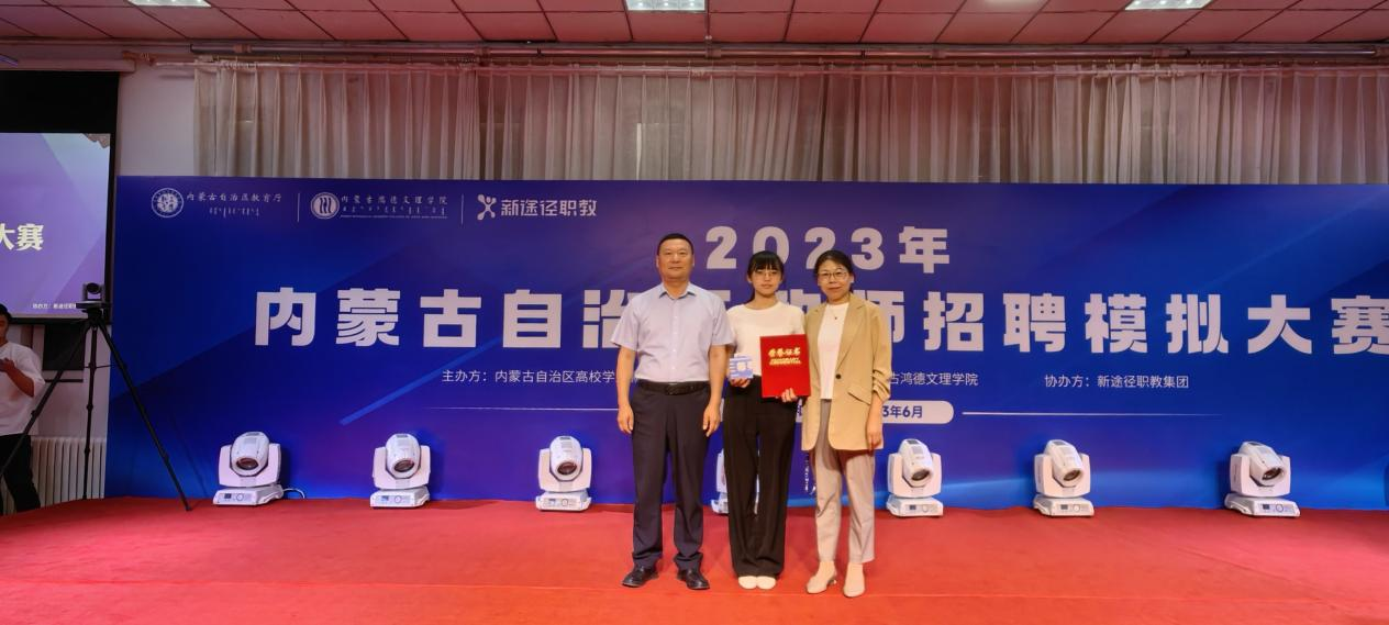 6月4日,2023年內(nèi)蒙古自治區(qū)大學(xué)生教師招聘模擬大賽在內(nèi)蒙古鴻德文理學(xué)院舉行。比賽分為初賽(筆試)、復(fù)賽(結(jié)構(gòu)化面試)、決賽(說課和試講)三個(gè)階段。經(jīng)過各高校初賽選拔,共有22所高校的88位參賽選手進(jìn)入復(fù)賽,我校入圍選手3人,經(jīng)過激烈角逐,最終,基礎(chǔ)教育學(xué)院吳勝欣同學(xué)喜獲第三名,學(xué)前教育學(xué)院袁雪飛和文學(xué)院李欣然同學(xué)獲得優(yōu)秀獎(jiǎng)。