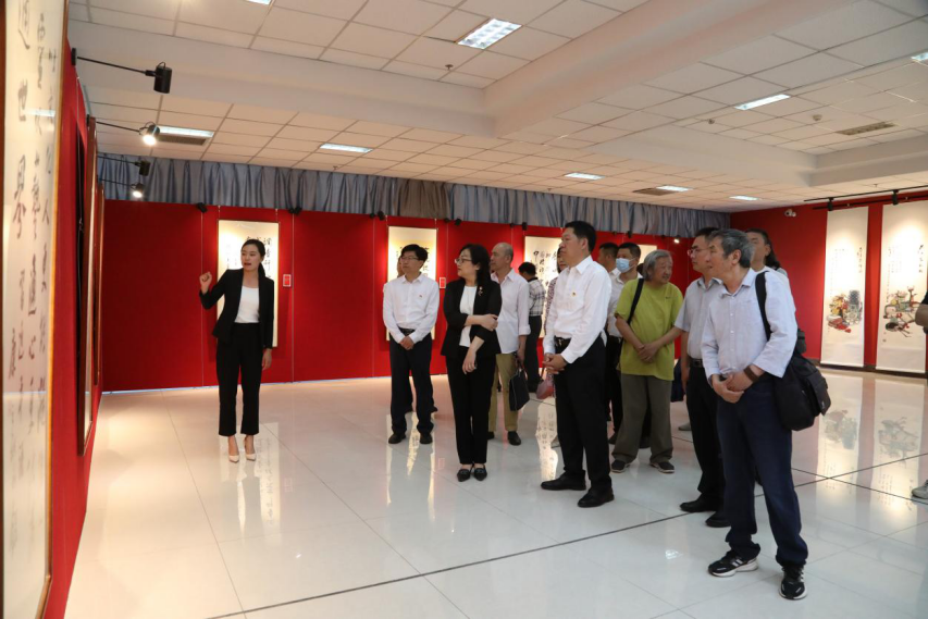 此次書畫展,共展出自治區文史研究館館員、研究員作品112幅、我校美術學院教師作品10幅。作品以書法、繪畫、篆刻等形式,把學習貫徹黨的二十大精神、學習貫徹習近平新時代中國特色社會主義思想主題教育、鑄牢中華民族共同體意識等內容,形象、生動、直觀地展現出來,以精湛的藝術形式集中展現了內蒙古各族人民感黨恩、聽黨話、跟黨走的生動實踐。