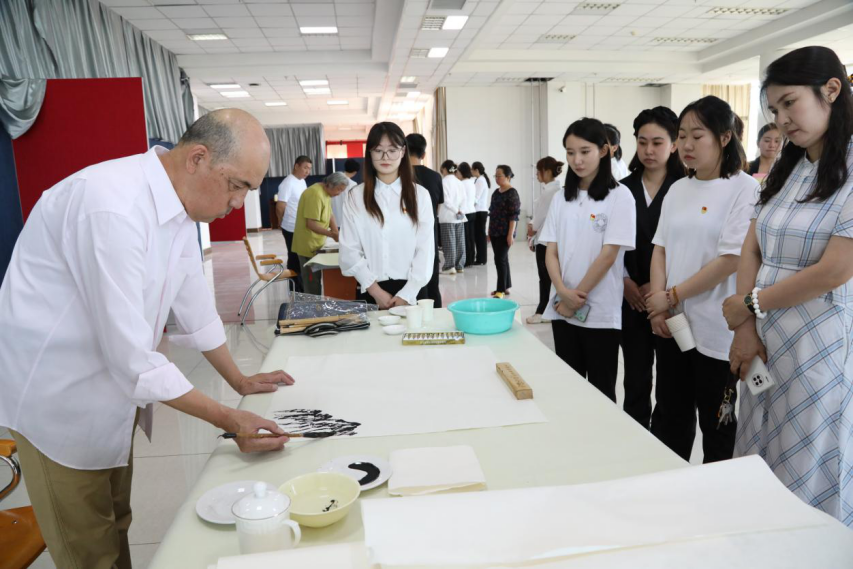 其間,館員老師們進行了現場創作,引來觀展師生們的關注,為相關專業學生呈現了一堂生動的現場觀摩課。