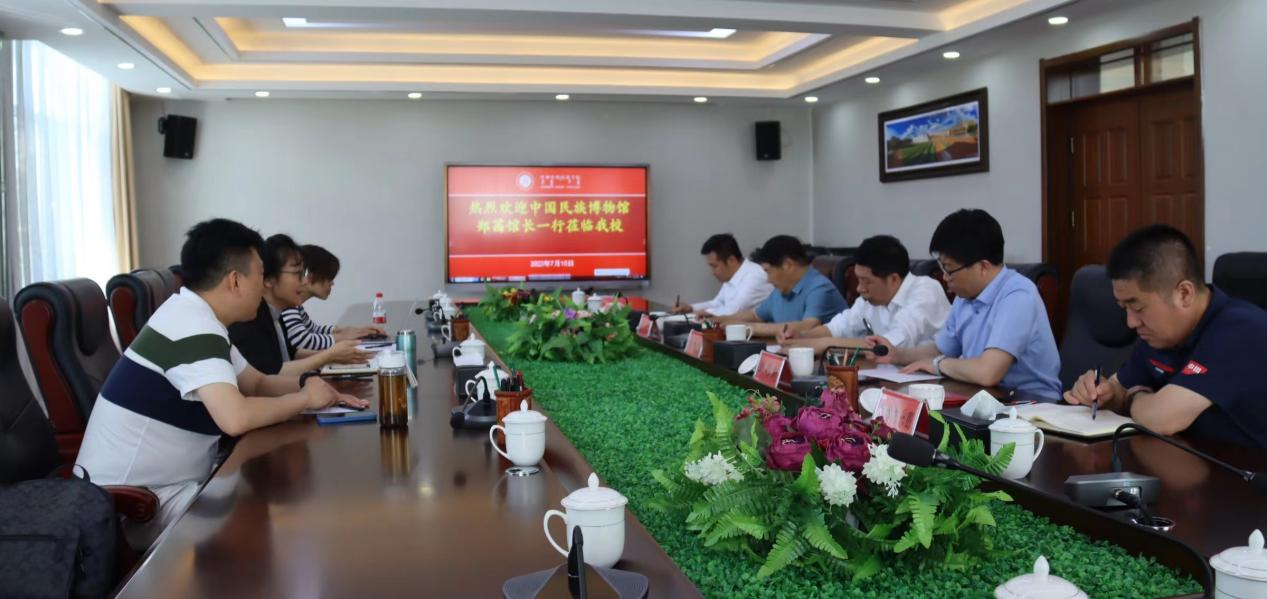 座談中,劉九萬(wàn)從學(xué)校的歷史沿革、人才培養(yǎng)、師資隊(duì)伍、校園文化等情況作了介紹,并表示,與中國(guó)民族博物館合作,是我校發(fā)展的重要機(jī)遇,要加快推動(dòng)鑄牢館建設(shè)、校史館建設(shè),依托場(chǎng)館加快形成“館課一體、館研一體、館創(chuàng)一體、館演一體”的宣教體系,推動(dòng)學(xué)校民族工作高質(zhì)量發(fā)展,為完成好自治區(qū)五大任務(wù)和全方位建設(shè)“模范自治區(qū)”兩件大事貢獻(xiàn)呼民院力量。