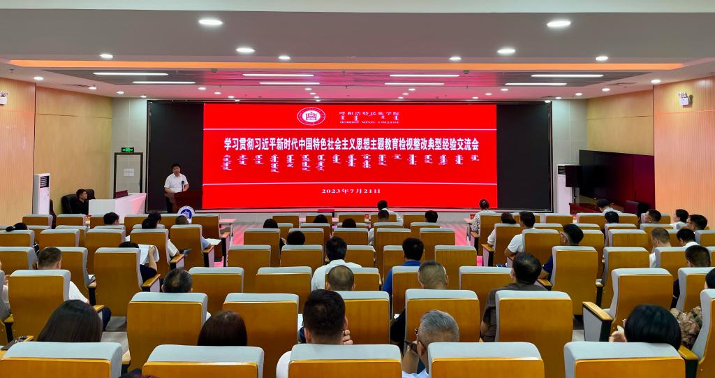 7月22日,學校召開學習貫徹習近平新時代中國特色社會主義思想主題教育檢視整改典型經驗交流會。校黨委書記劉九萬,校黨委副書記、校長韓偉新,校紀委書記、監察專員王冬梅出席會議,全校處級干部參加會議。會議由校黨委委員、組織部部長吳阿古拉主持。