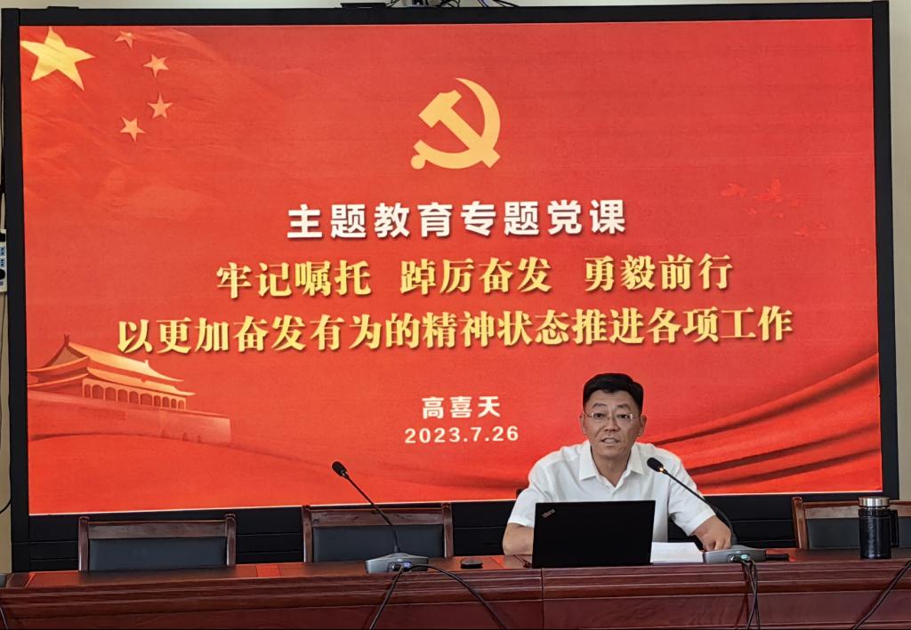 為深入學(xué)習貫徹習近平新時代中國特色社會主義思想,7月26日下午,黨委委員、副校長高喜天在辦公樓四樓會議室以“牢記囑托 踔厲奮發(fā) 勇毅前行,以更加奮發(fā)有為的精神狀態(tài)推進各項工作”為題,為人事處、發(fā)展規(guī)劃與學(xué)科建設(shè)處、團委、國有資產(chǎn)管理處、信息中心、公共管理學(xué)院、化學(xué)與環(huán)境學(xué)院等分管部門單位黨員干部講授了專題黨課。