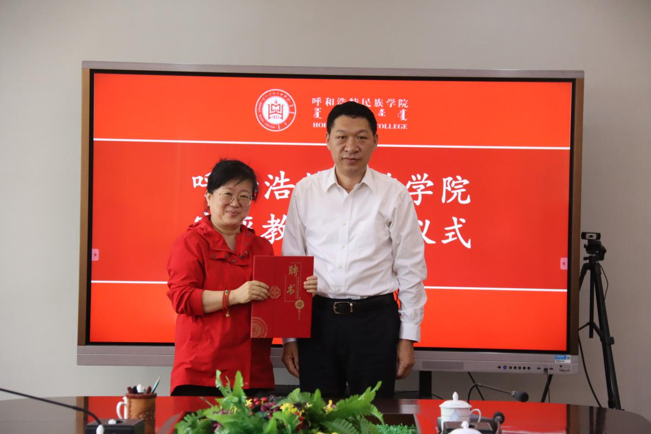 納麗娜主持儀式時向兩位教授簡要介紹了我校歷史沿革、發展成就等基本情況,并為與會人員介紹了謝麗教授和李聰教授的履歷情況。