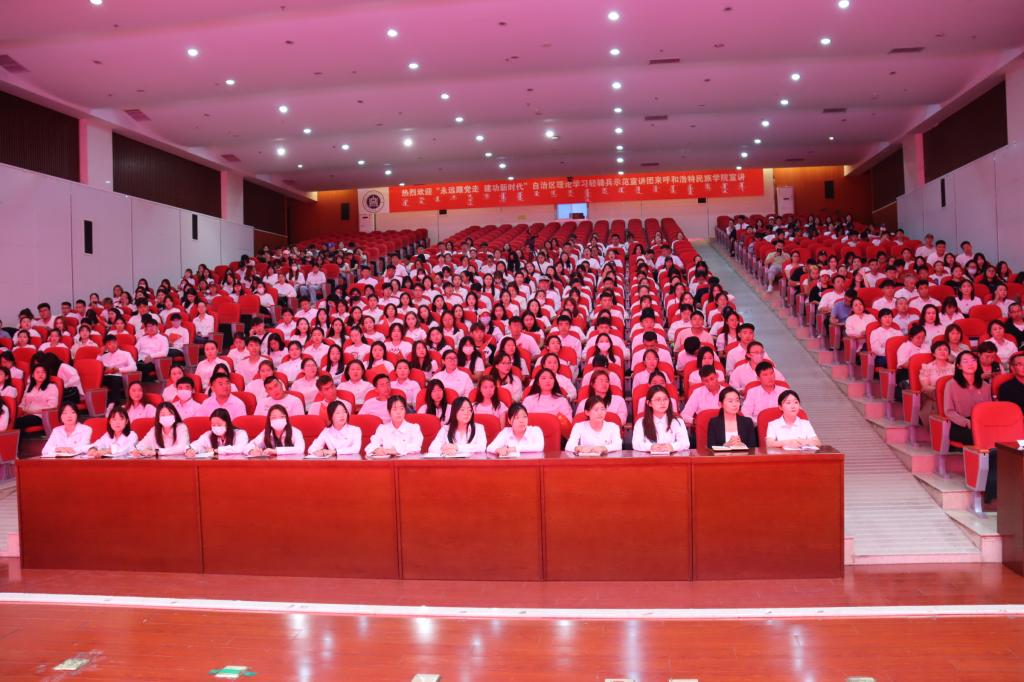 為深入學習貫徹習近平總書記對內蒙古的重要指示精神,按照自治區黨委統一安排,9月5日上午,“永遠跟黨走 建功新時代”自治區理論學習輕騎兵示范宣講團第一小分隊來校開展宣講工作。機關黨委各黨支部成員、思政課教師、各二級學院黨總支書記、輔導員、班主任以及學生代表共計500余人到會聆聽。校黨委副書記胡春梅主持宣講報告會。