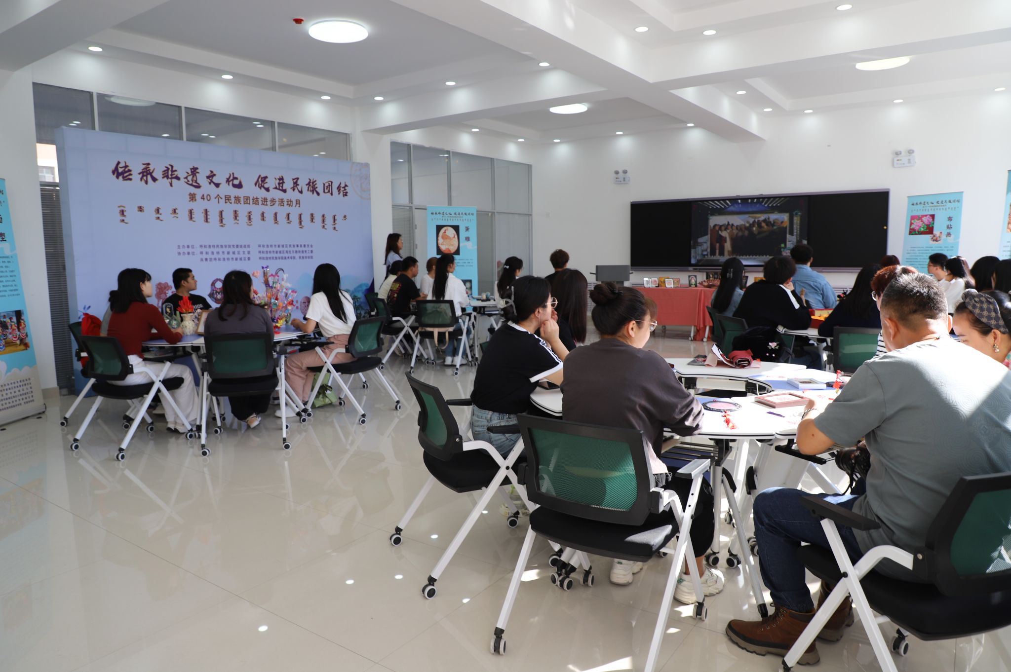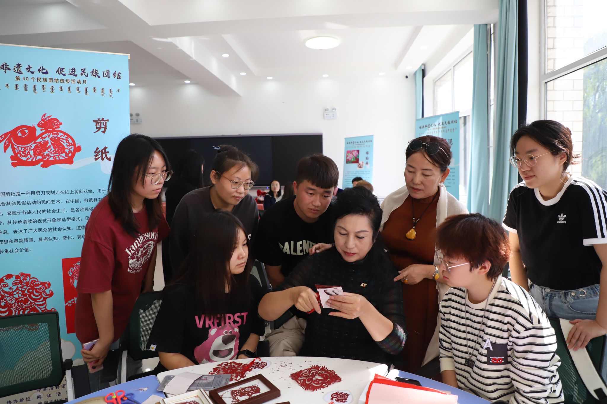 9月是第40個民族團結進步活動月。為有形有感有效開展鑄牢中華民族共同體意識教育,進一步增強對偉大祖國、中華民族、中華文化、中國共產黨、中國特色社會主義的認同,9月20日上午,呼和浩特民族學院與呼和浩特市新城區民委聯合組織邀請剪紙、泥塑、面塑、蛋雕、布貼畫等非物質文化遺產傳承人走進校園,面向青年大學生開展“傳承非遺文化 促進民族團結”互動交流活動。呼和浩特市新城區統戰部副部長、民委黨組書記、民委主任樊建軍,呼和浩特市新城區海拉爾路街道黨工委副書記、辦事處主任魏景明出席,學校黨委統戰部、民族學學院、美術學院負責人及師生參加了此次活動。