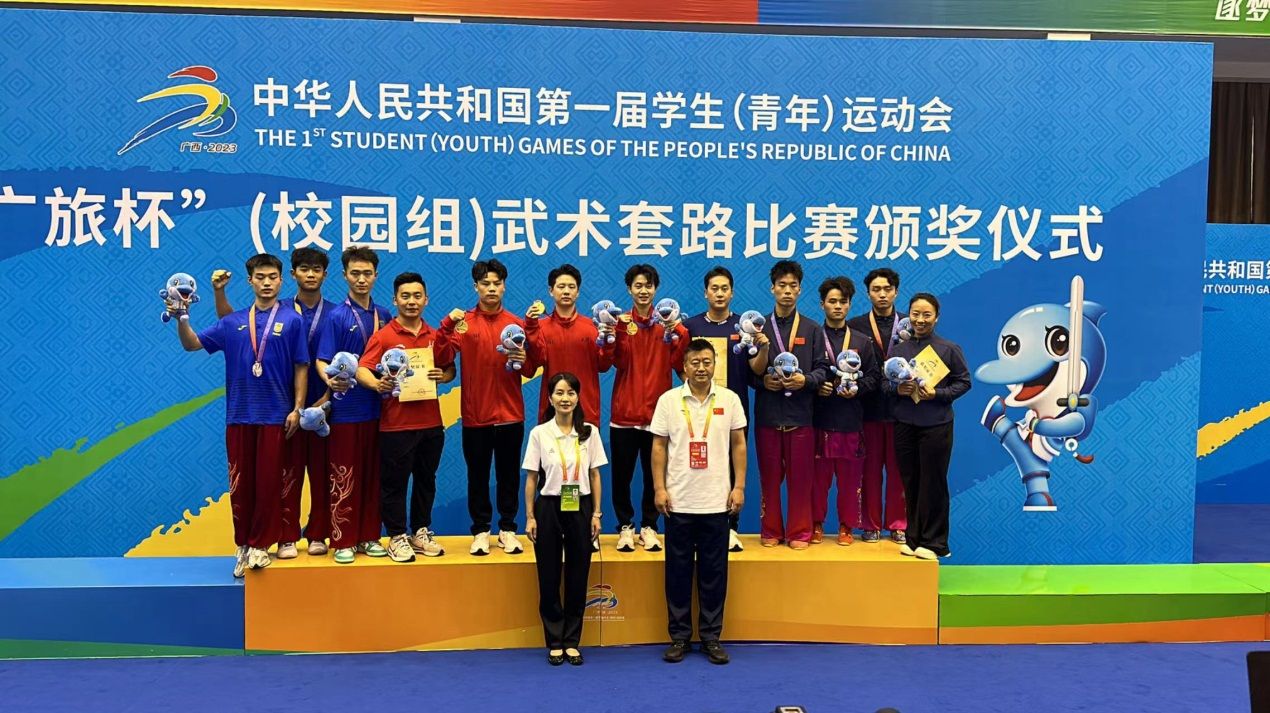 11月5日,由國家教育部、國家體育總局、共青團中央共同主辦,廣西壯族自治區承辦的第一屆全國學生(青年)運動會在廣西壯族自治區南寧市拉開帷幕。在此次學青會武術比賽(大學組、中學組)中共有來自32個省、市、自治區、特別行政區在內的547名運動員參賽。我校代表內蒙古代表團出戰的武術隊取得了男子三人對練項目亞軍的優異成績。