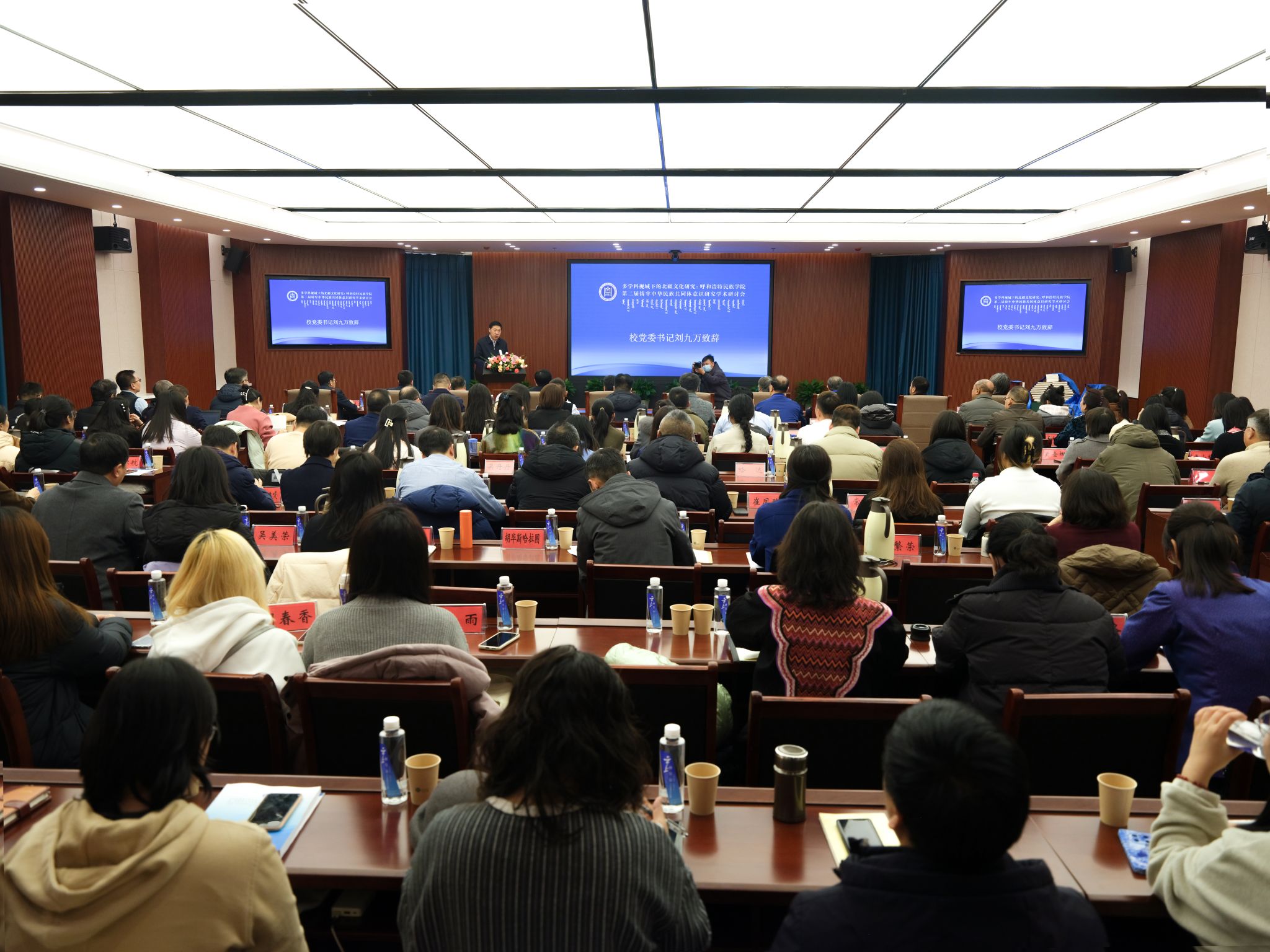 11月24至26日,學(xué)校鑄牢中華民族共同體意識研究基地舉辦了校慶70周年系列活動之“多學(xué)科視域下的北疆文化研究:第二屆鑄牢中華民族共同體意識研究學(xué)術(shù)研討會"。來自清華大學(xué)、中國人民大學(xué)、中央民族大學(xué)、蘭州大學(xué)、西北民族大學(xué)、新疆師范大學(xué)以及區(qū)內(nèi)各高校、科研機構(gòu)的80余名專家學(xué)者出席本次學(xué)術(shù)研討會。校黨委書記、研究基地主任劉九萬出席會議并致開幕辭,校黨委副書記、校長韓偉新主持開幕式。校黨委委員、副校長高喜天主持主旨報告。
