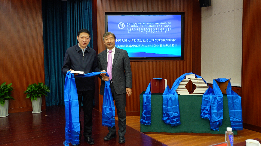 其間,中國人民大學(xué)西域歷史語言研究所向呼和浩特民族學(xué)院鑄牢中華民族共同體意識研究基地贈書。