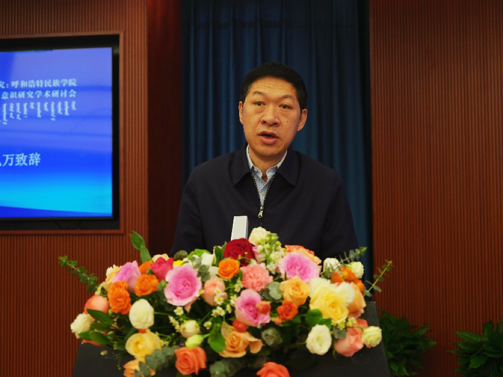 鑄牢中華民族共同體意識研究基地學(xué)術(shù)委員會主任、長江學(xué)者烏云畢力格教授向呼和浩特民族學(xué)院70華誕表示熱烈的祝賀。烏云畢力格表示,北疆文化是中華文化的重要組成部分,它體現(xiàn)了中華文明博大精深,兼容并包的獨特魅力。他強調(diào),研究北疆文化,需要樹立正確的中華民族歷史觀,需要多學(xué)科之間的交流合作。