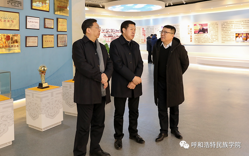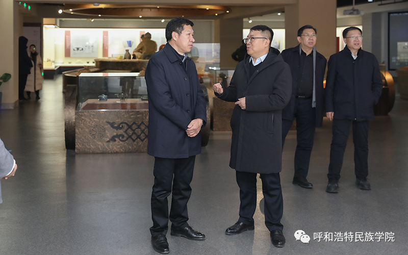 劉九萬一行參觀了內(nèi)蒙古民族大學(xué)校史館、蒙醫(yī)藥展廳、西遼河文明展廳和鑄牢中華民族共同體意識工作展廳。