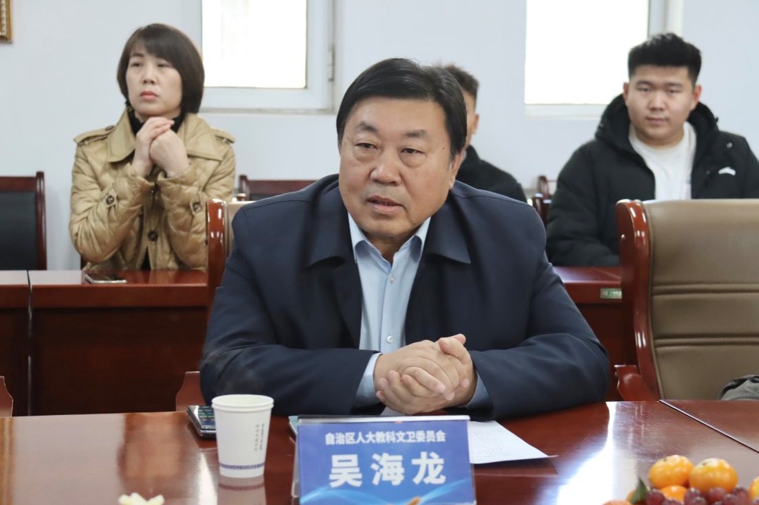 韓偉新對內蒙古日報社一行的到來表示熱烈歡迎,并誠摯邀請內蒙古日報社參加學校70周年校慶慶典。他對內蒙古日報社此次贈書及長期以來的支持表示感謝,并簡要介紹了學校歷史沿革、辦學理念。他希望,雙方進一步深化合作,推進產學研一體化,共同培養(yǎng)更多具有創(chuàng)新精神的各類人才,為自治區(qū)經濟社會發(fā)展貢獻更多力量。