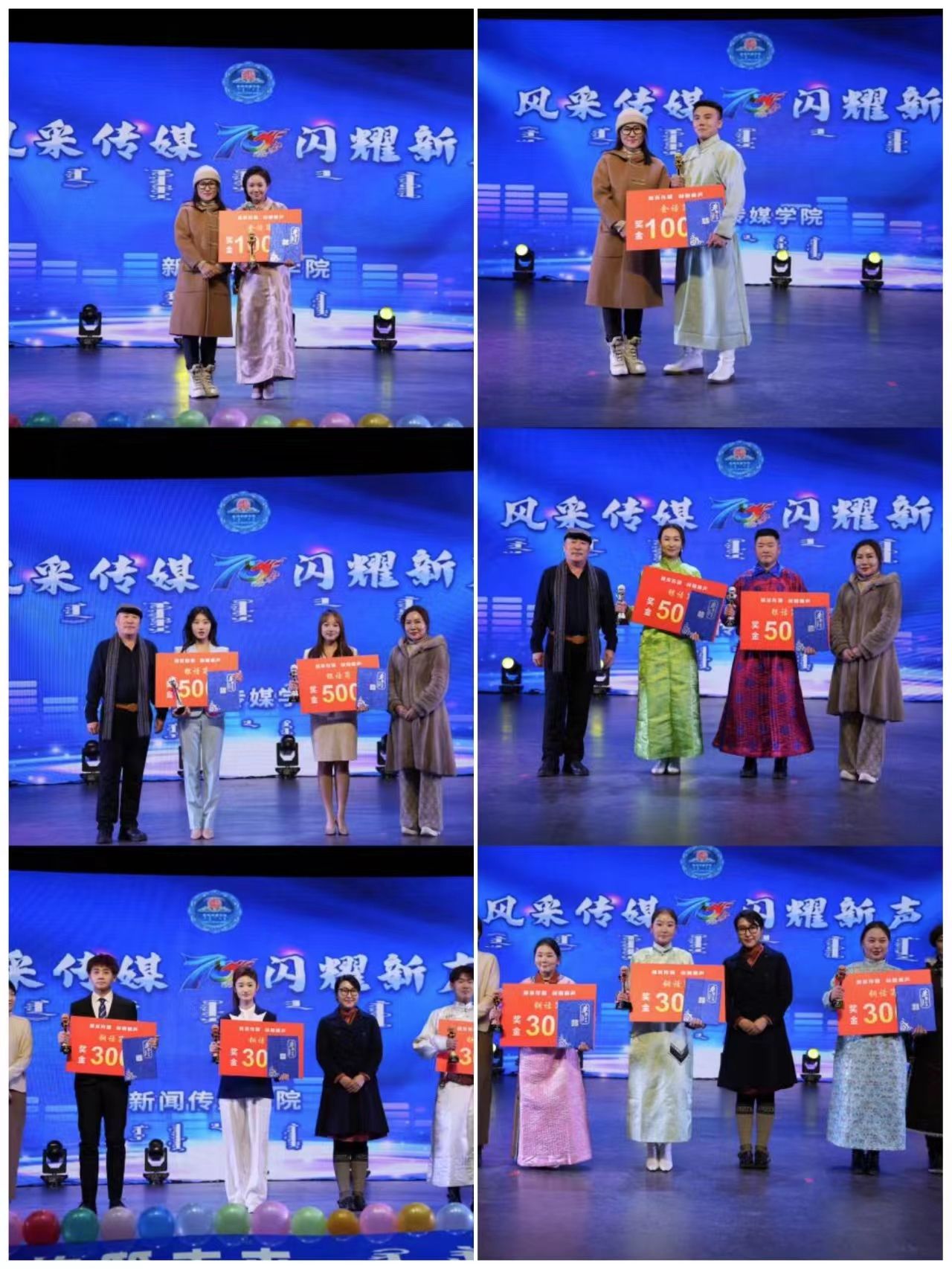 決賽共分為自我展示、模擬主持PK、才藝表演三個(gè)環(huán)節(jié)。最終,經(jīng)過(guò)激烈的角逐,漢語(yǔ)組和蒙語(yǔ)組分別評(píng)選出了“金話筒”獎(jiǎng)一名,“銀話筒”獎(jiǎng)兩名,“銅話筒”獎(jiǎng)三名。