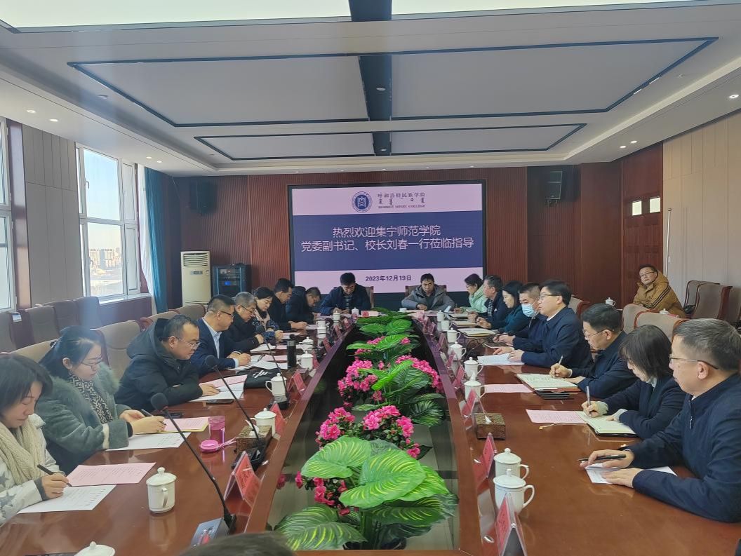 12月19日上午,集寧師范學院黨委副書記、校長劉春一行13人到校考察調研。校黨委書記劉九萬,黨委副書記、校長韓偉新,黨委委員、副校長高喜天等領導出席考察調研活動。
