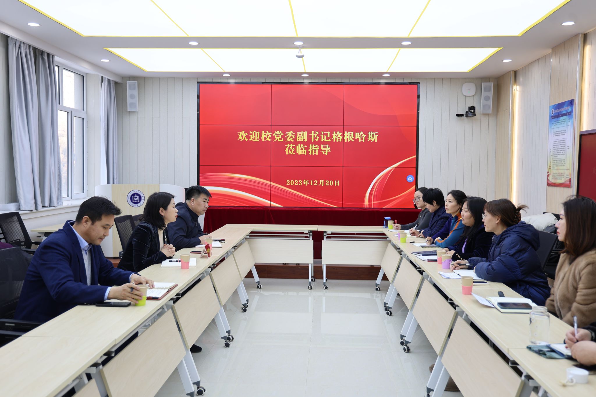 為深入了解我校思政課建設和思政課教師隊伍建設情況,12月20日下午,校黨委副書記格根哈斯一行深入馬克思主義學院調研指導工作。馬克思主義學院班子成員、各教研室主任和教師代表參會,座談會由馬克思主義學院黨總支書記吳美榮主持。
