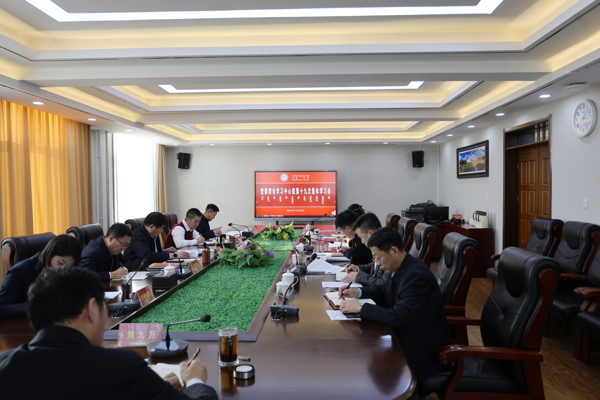為進(jìn)一步深入學(xué)習(xí)貫徹習(xí)近平總書記關(guān)于加強(qiáng)和改進(jìn)民族工作的重要思想,深入學(xué)習(xí)領(lǐng)會(huì)習(xí)近平總書記在中央經(jīng)濟(jì)會(huì)議上的重要講話精神、在中央政治局專題民主生活會(huì)議上的重要講話精神,推動(dòng)習(xí)近平新時(shí)代中國(guó)特色社會(huì)主義思想入心入腦,推動(dòng)鑄牢中華民族共同體意識(shí)建設(shè)走深走實(shí),推動(dòng)學(xué)校高質(zhì)量發(fā)展,12月28日,校黨委書記劉九萬(wàn)主持召開黨委理論學(xué)習(xí)中心組第十九次集體學(xué)習(xí)會(huì)。校黨委理論學(xué)習(xí)中心組成員出席會(huì)議。