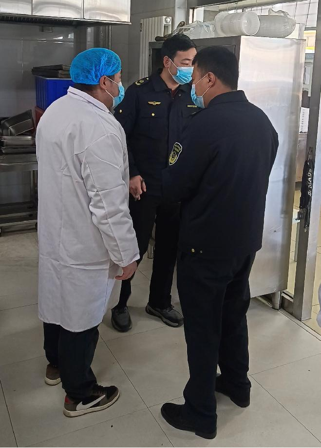 3月1日,新城區(qū)海東路市場監(jiān)督管理所工作人員來我校指導(dǎo)食品安全工作,校黨委委員、副校長劉瑞鴻陪同檢查。