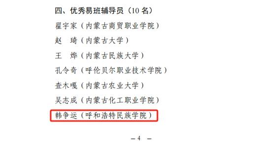 近日,2023年度內蒙古自治區高校易班評優結果公布。我校獲評“優秀易班共建高校”,易班工作站獲評“優秀易班工作站”,學生工作部思想政治教育科教師韓爭運被評為“優秀易班輔導員”。
